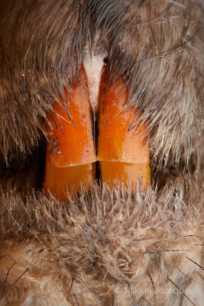 Til højre ser du bæverens tænder. På tegninger er bæveren ofte afbilledet med to store fortænder, der konstant stritter ud af munden. Men sådan er det faktisk ikke i virkeligheden. Bæverens tænder er som regel pænt gemt væk bag ved læberne, og man kan som regel kun være heldig at se dem, når bæveren spiser eller fæller træ. Men på dette billede kan du tydeligt se en af bæverens mest særprægede karakteristika: De skarpe, orange fortænder.