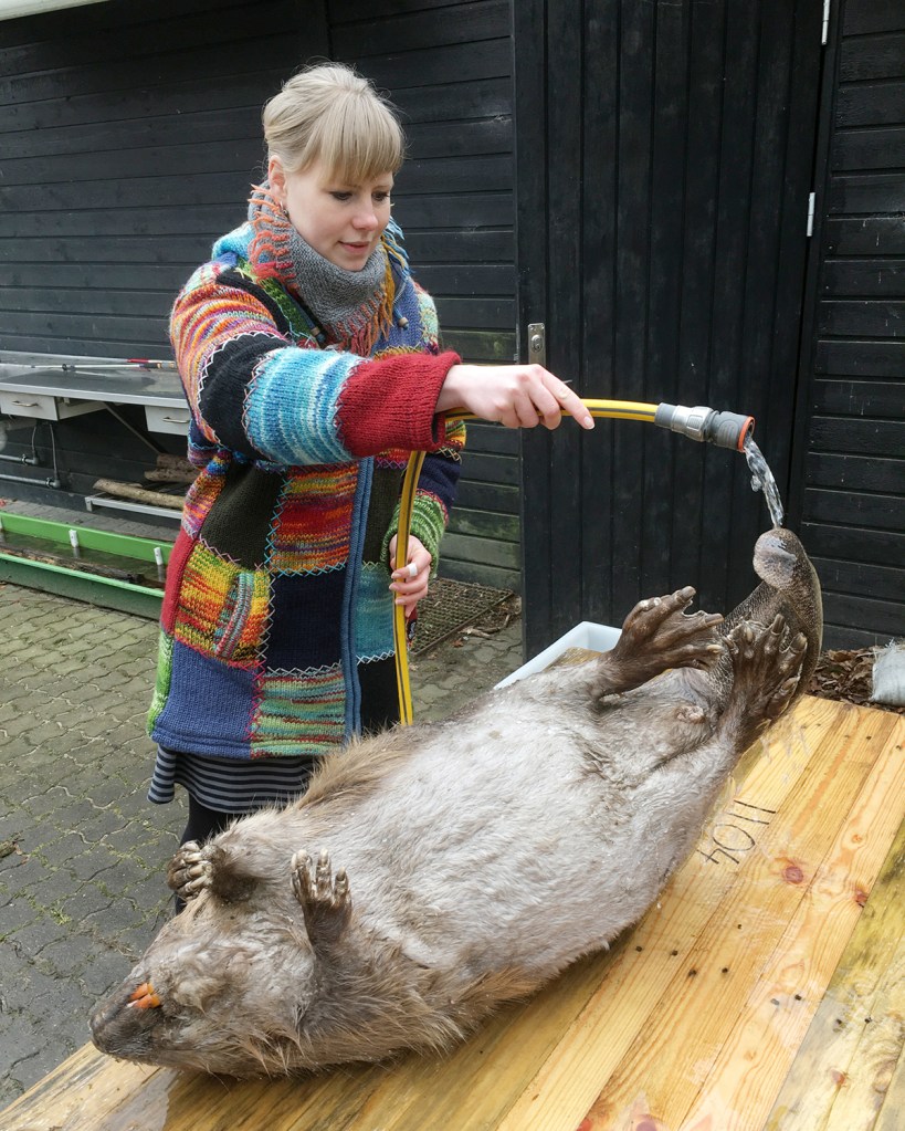 Det var Aqua Akvarium og Dyrepark i Silkeborg, der kom os til hjælp og havde den døde bæver i fryseren, og i denne uge var vi på besøg for at “låne” bæveren til fotografering.